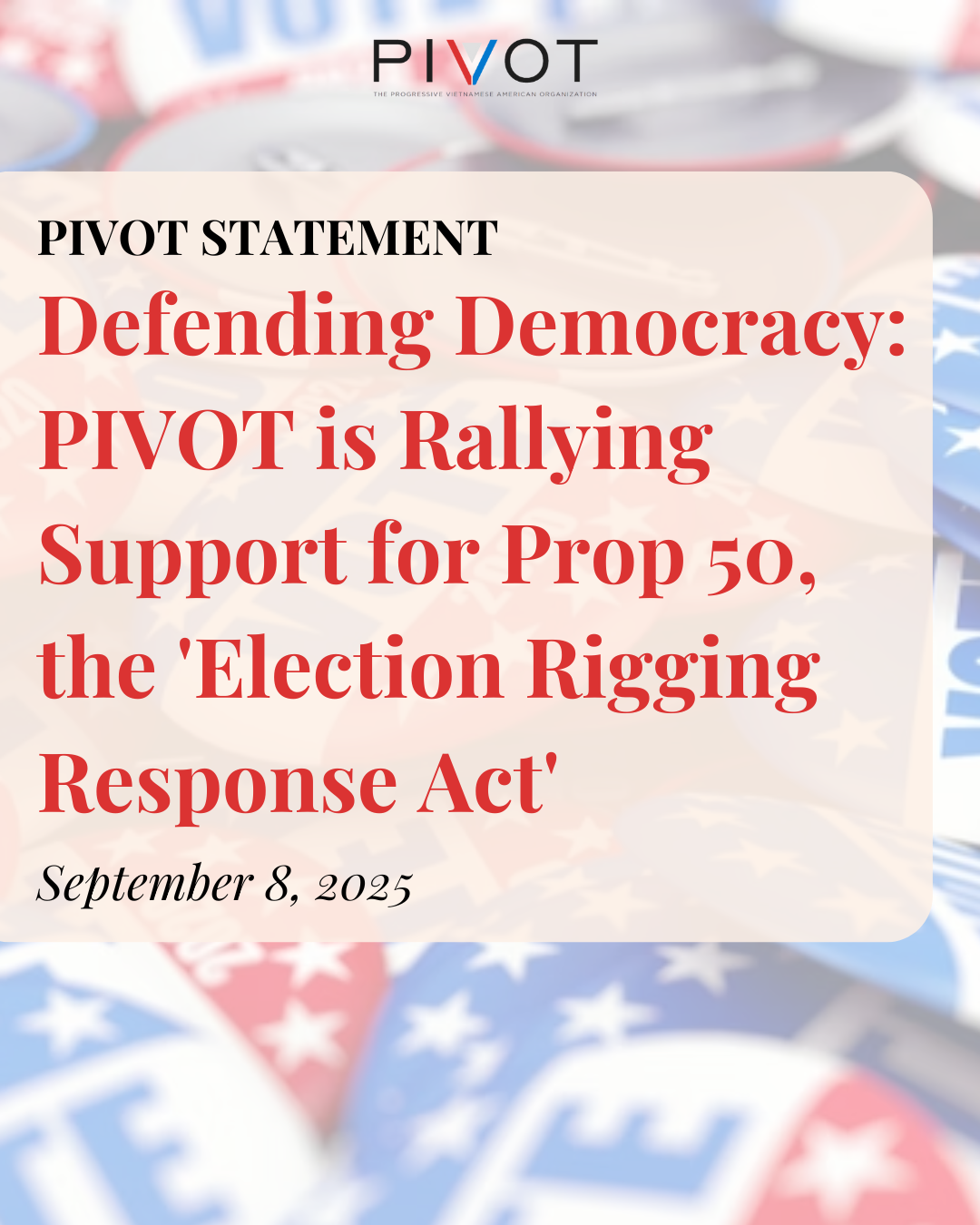 PIVOT Statement: Defending Democracy: PIVOT is Rallying Support for Prop 50, the 'Election Rigging Response Act'